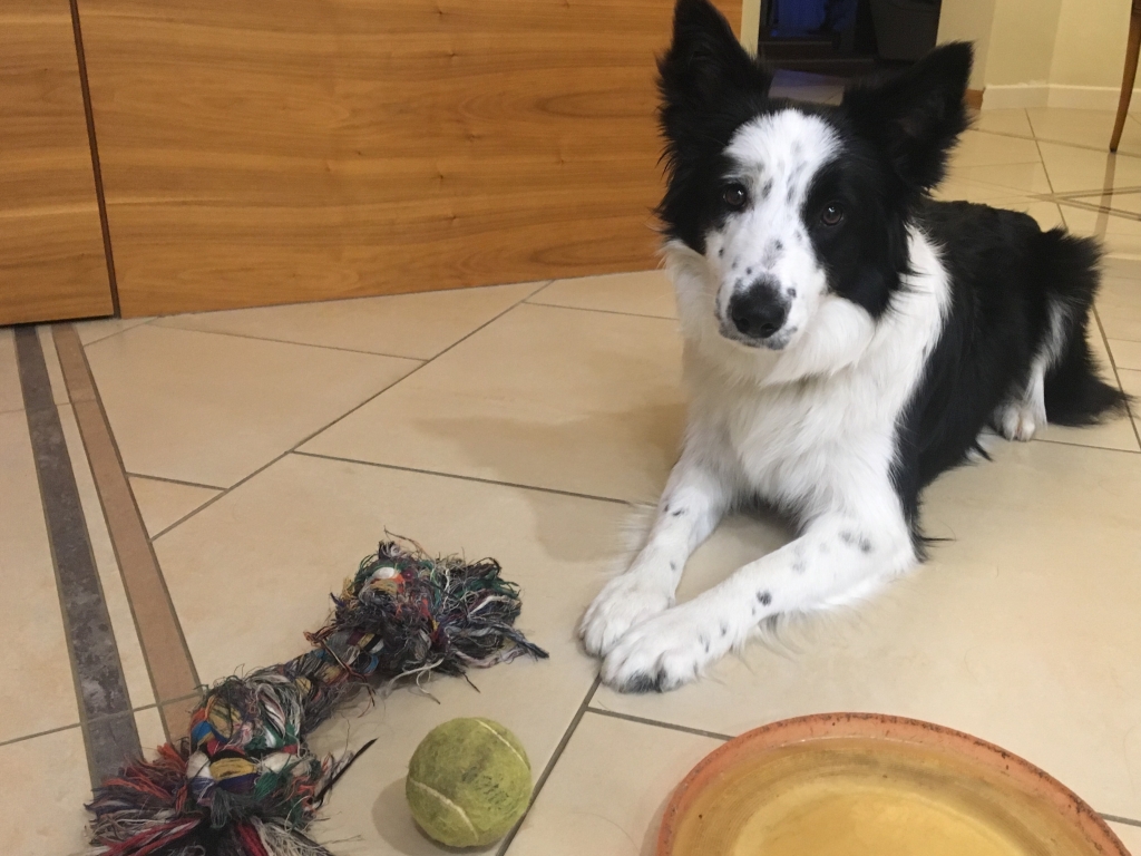 Obecnie, trenujemy z nią aportowanie. Jessi bardzo chętnie biegnie za piłką ale zostawia ją 5 m przed przewodnikiem zamiast przynieść.